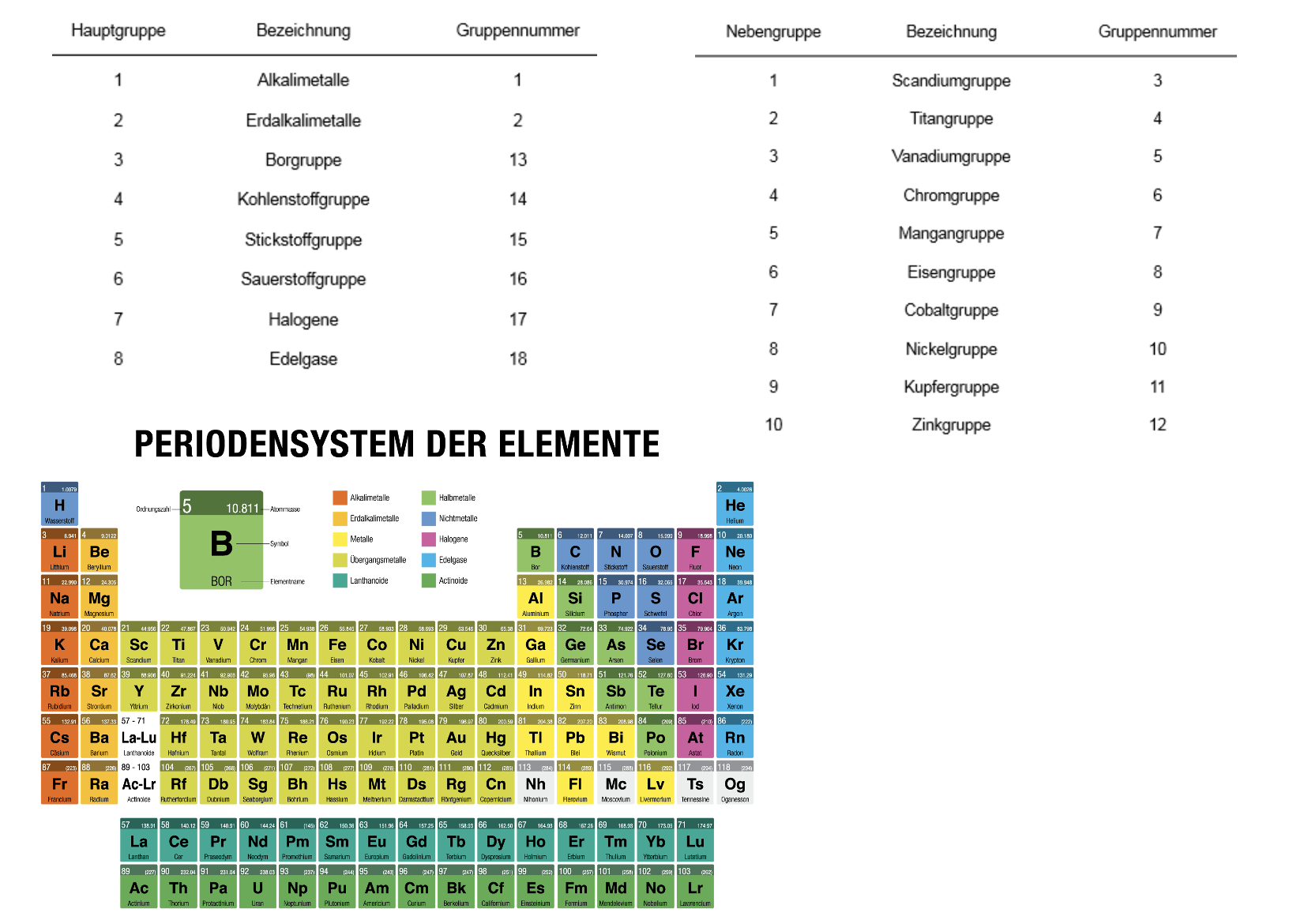 Periodensystem mit den elementen und hauptgruppen zum ausdrucken :
